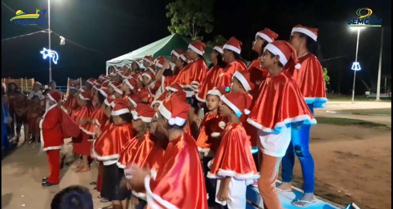Dezenas de moradores de Vitória do Jari compareceram à Praça Bela Vista na noite de 21.12 para o “Acender das Luzes de Natal”. O evento que faz parte da programação natalina executado pela administração municipal, através da Secretaria Municipal de Cultura e contou com Cantata de Natal do SCFV, apresentações de alunos da Educação Infantil, distribuição de algodão doce, pipoca e pula-pula grátis para as crianças.