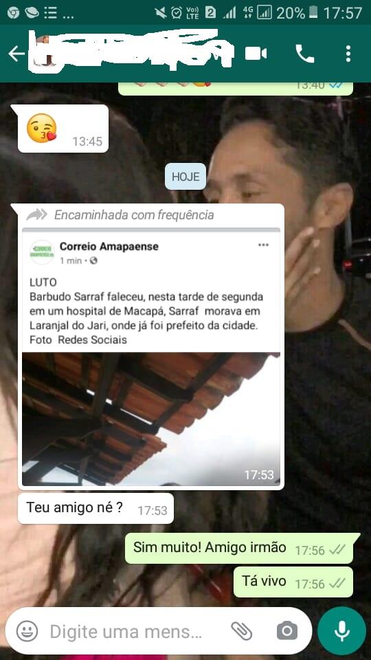 Notícias sem as devidas confirmações de sua veracidade por portais e blog, ditos “jornalísticos”, continuam a espalhar informações sem as devidas confirmações. Hoje, foi postado uma notícia assustadora para a sociedade amapaense, principalmente para os laranjalense e para os familiares de ex- prefeito de Laranjal do Jari, Barbudo Sarraf tinha falecido devido a Covid-19.