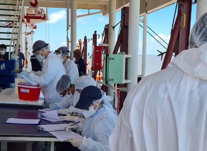 Dos oito estrangeiros confirmados com covid-19, um teve óbito registrado no dia 16 de agosto, ainda no navio; e dois foram encaminhados para o Centro Covid-HU, após avaliação médica.