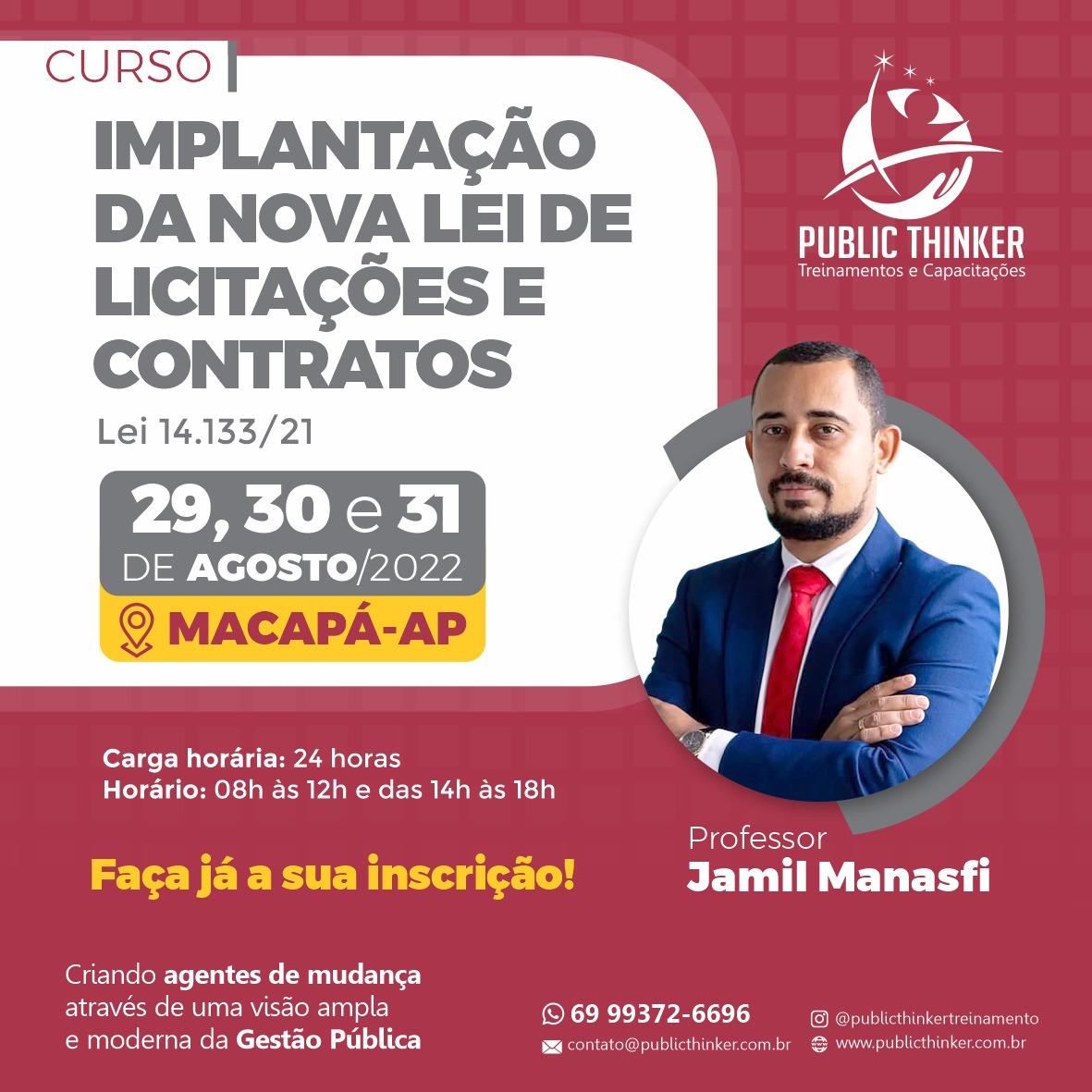O evento é uma parceria entre a empresa Public Thinker Treinamentos e Capacitações em parceria com Ministério Público do Amapá - MPAP, sobre a Implantação da Nova Lei de Licitações e Contratos Administrativos.