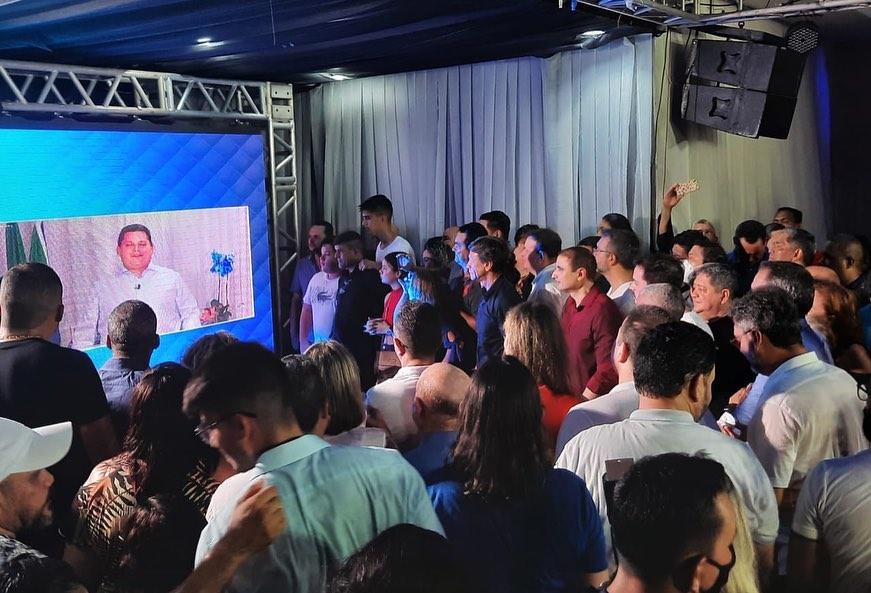 O senador Davi Alcolumbre (UB) participou do evento por meio de uma transmissão ao vivo direto de Brasília, porque se recupera de uma cirurgia. Ele agradeceu o apoio de Waldez a sua campanha.