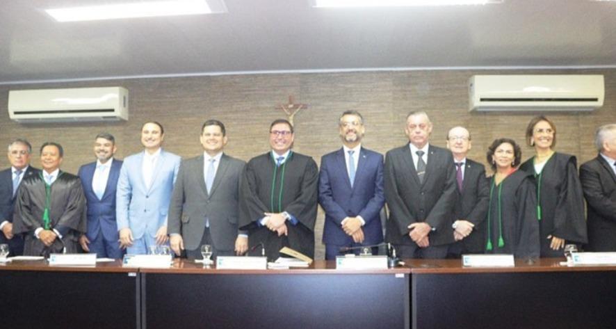 Os desembargadores Adão Carvalho e Jayme Ferreira representaram o Tribunal de Justiça do Amapá, na cerimônia de posse da mesa diretora dos novos dirigentes do Tribunal de Contas do Estado, eleitos para o biênio 2023/2024, nesta sexta-feira (13).