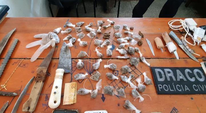 Porções de drogas, possivelmente maconha e cocaína, e envelopes de LSD também foram apreendidas. Estefano enfatizou que o material encontrado servirá para reforçar o Inquérito Policial (IP) que indiciará os responsáveis pelos crimes. “Trata-se de uma ação importante. Nós estamos preparando, robustecendo o nosso inquérito para indiciar os membros dessas facções e tomar uma atitude mais enérgica. Estamos trabalhando, inclusive, a possibilidade da transferência desses indivíduos para tentar trazer um pouco mais de calma para a população do nosso Estado”, revelou o delegado.
