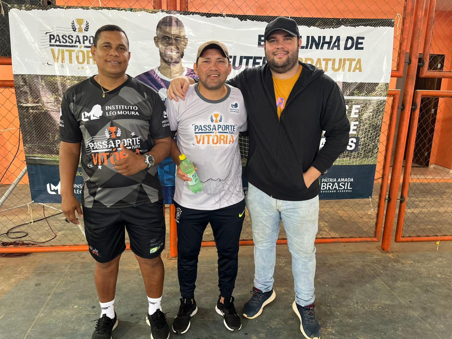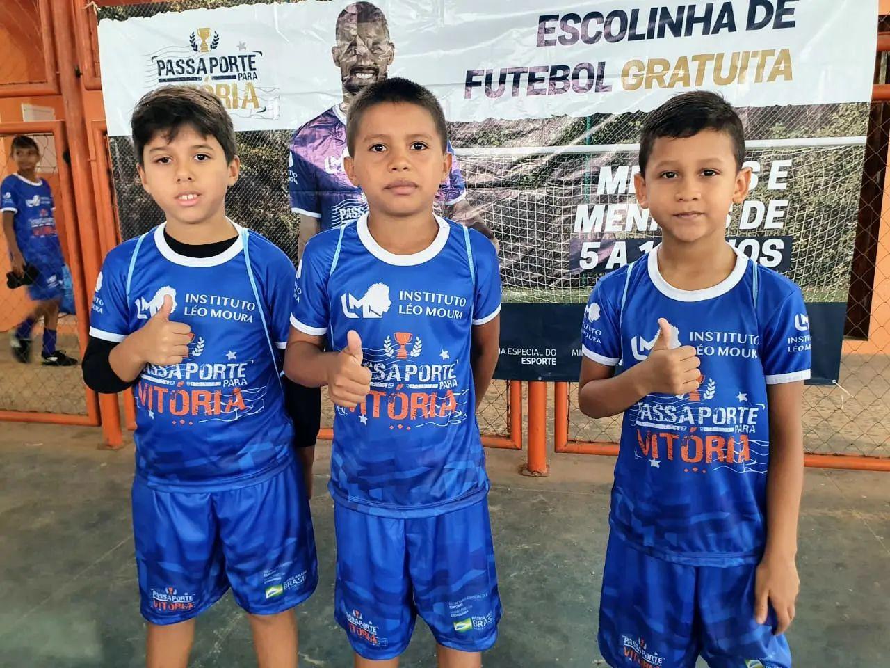 Nessa semana o núcleo do projeto Passaporte para a Vitória em Pedra Branca do Amapari recebeu a complementação do material de trabalho e esportivo para os inscritos no projeto. Os kits de material esportivo da escolinha de futebol Passaporte para Vitória, do Instituto Léo Moura são entregues na aula inaugural em cada município amapaense.
