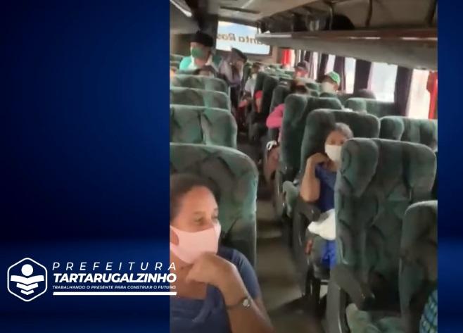 O prefeito Bruno Mineiro, Presidente da Câmara Felipe Rezende e a secretária de saúde Liliane Abreu acompanharam a chegada do ônibus que trouxe os pacientes, todos moradores de Tartarugalzinho.