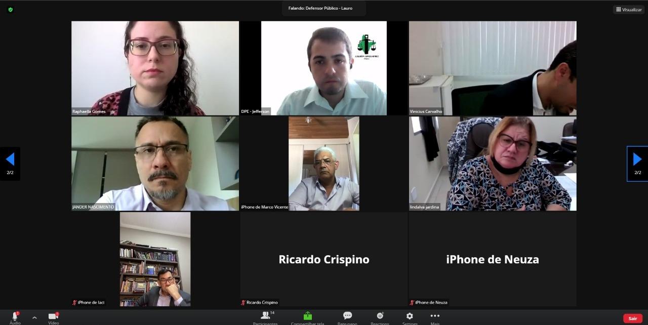 Promotorias Criminais do Ministério Público do Amapá (MP-AP) reuniram nesta quarta-feira (8), por meio de videoconferência, com a Defensoria Pública do Estado do Amapá (DPE/AP) para tratar dos trâmites para os Acordos de Não Persecução Penal (ANPP). Participaram o chefe de gabinete da Procuradoria-Geral de Justiça, João Furlan, e os promotores de Justiça com atuação na área Criminal: Marco Antônio Vicente; Lindalva Jardina; Iaci Pelaes; Vinicius Carvalho; Ricardo Crispino; Jander Vilhena (coordenador) e Neuza Barbosa; e pelo Estado: os defensores públicos do Núcleo Especializado Criminal de Macapá, Lauro Miyasato (coordenador), Júlia Pereira, Rafaella Gomes, Jefferson Alves e Marília Perez.