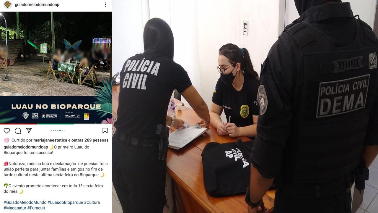 A Polícia Civil do Amapá, por meio da Delegacia Especializada em Crimes Contra o Meio Ambiente (DEMA), concluiu o inquérito policial que apurava supostas irregularidades na realização do evento denominado “Luau do Bioparque” e indiciou sete servidores da Secretaria Municipal do Meio Ambiente (SEMAM) e do Bioparque da Amazônia pelos crimes de associação criminosa, falsificação de documento público, uso de documento falso, falso testemunho e pelos crimes ambientais constantes nos artigos 60, 66, 67 e 69-A, todos da Lei nº9.605/98.