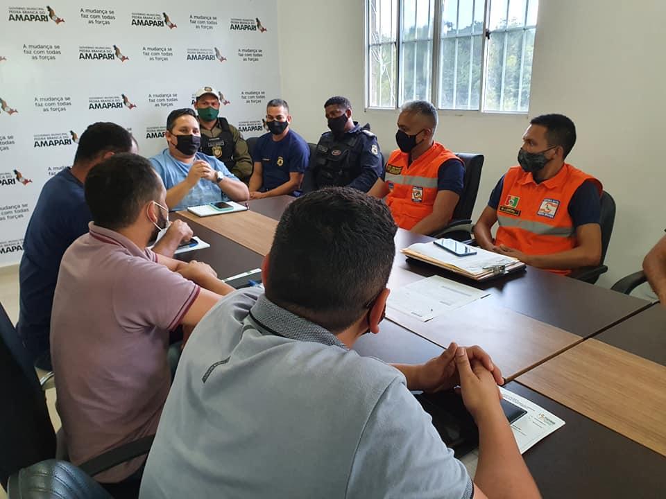 Em reunião realizada entre o prefeito em exercício Marcelo Pantoja, o coordenador Estadual de Defesa Civil, Coronel Wagner Coelho, e os órgãos que estão atuando na enchente que acontece no município de Pedra Branca do Amapari, foram traçadas estratégias de apoio às mais de 43 famílias afetadas pela cheia do rio Amapari.