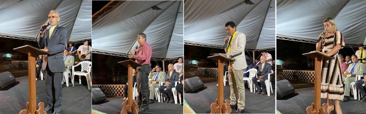 Durante a festa nos intervalos das apresentações das bandas locais, Pastores de várias igrejas evangélicas tiveram oportunidade para pregar a palavra de Deus, momento de oração e reflexão.