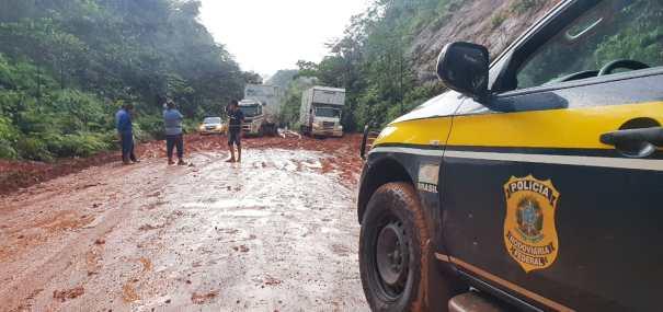 PRF informa sobre novo atoleiro na BR 156, deixando a estrada interditada.