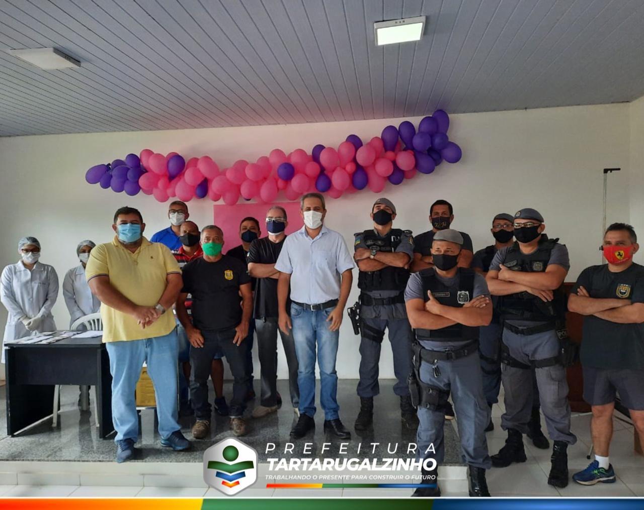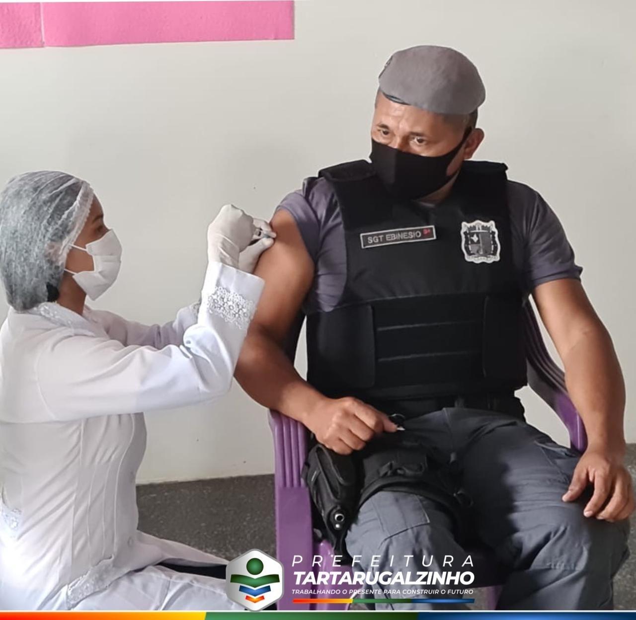 Os policiais militares e civis começaram a ser vacinados com a primeira dose da vacina contra covid-19, nesta quarta-feira (7) no Centro Covid de Tartarugalzinho.