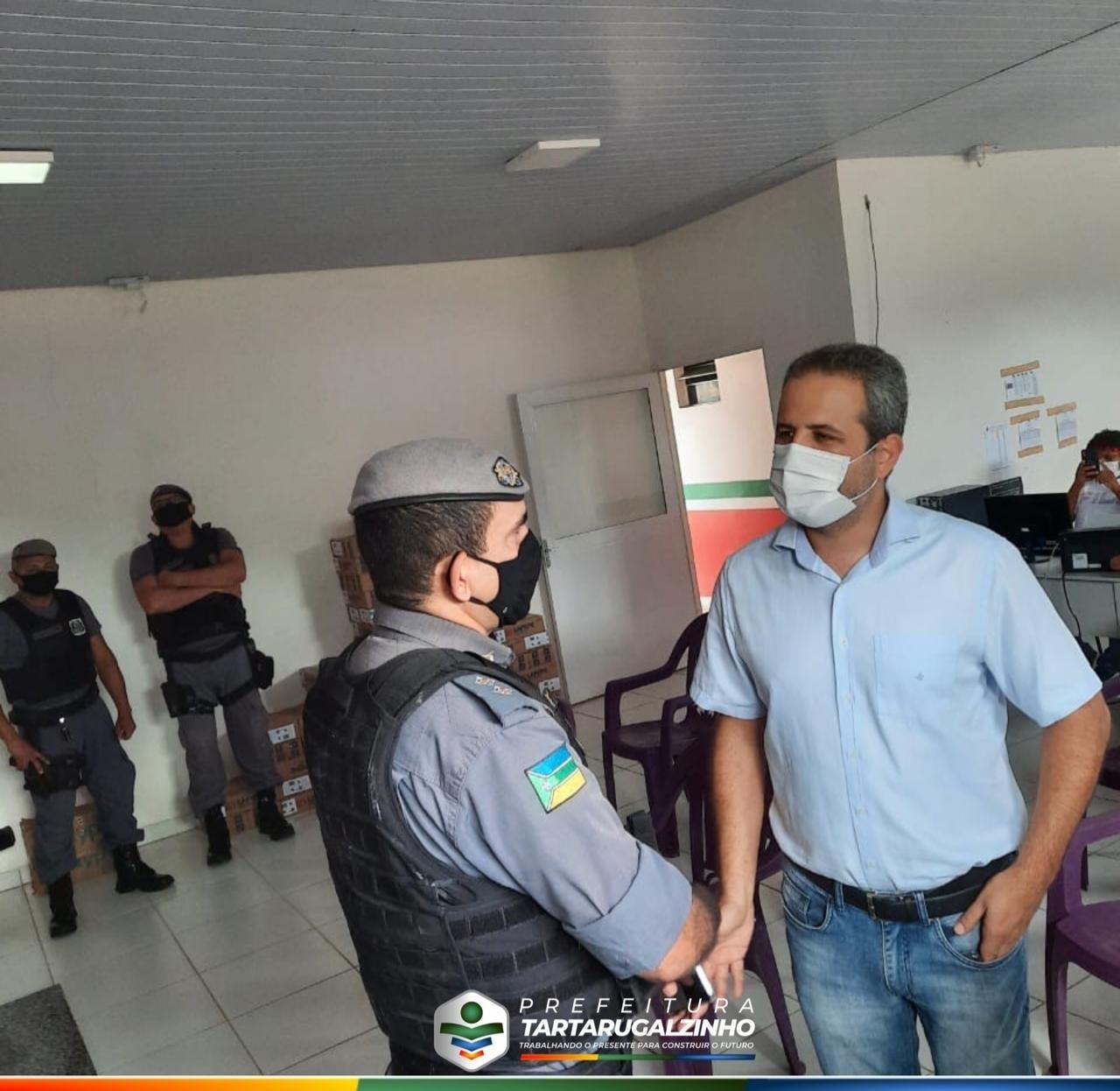 Na ocasião ele reforçou o empenho do governo do Estado na luta pela inserção dos profissionais como grupo prioritário, e agradeceu ao Tenente Benilson, comandante da 4ª Companhia, 7° Batalhão da Polícia Militar, e ao Orlando Cruz policial civil de Tartarugalzinho, pela atuação efetiva na fiscalização do cumprimento dos decretos pela população.