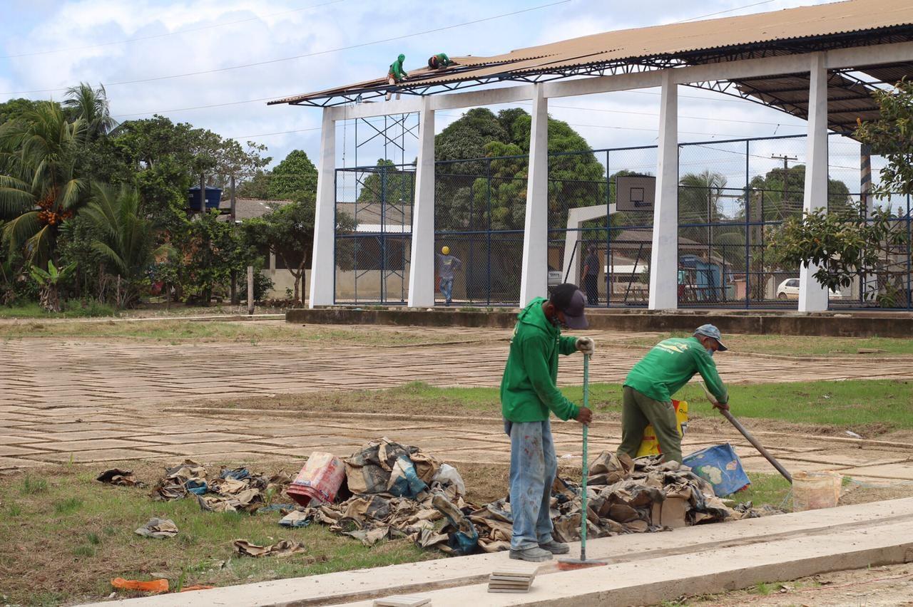 A Prefeitura de Laranjal do Jari segue o cronograma de execução de obras da construção da quadra de esportes do bairro Nazaré Mineiro, arena do bairro Cajari e revitalização da quadra do Sarney.