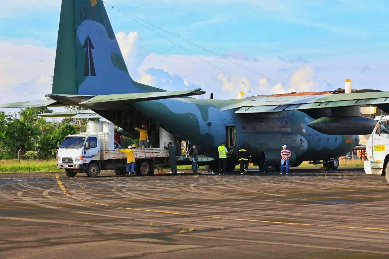 O equipamento foi deixado pela aeronave de carga Hércules, da Força Aérea Brasileira, que pousou em Monte Dourado, distrito do município paraense de Almeirim que fica no limite com Laranjal do Jari. O objetivo da usina, que será instalada na UPA da cidade, é atender pacientes com sintomas graves da covid-19.